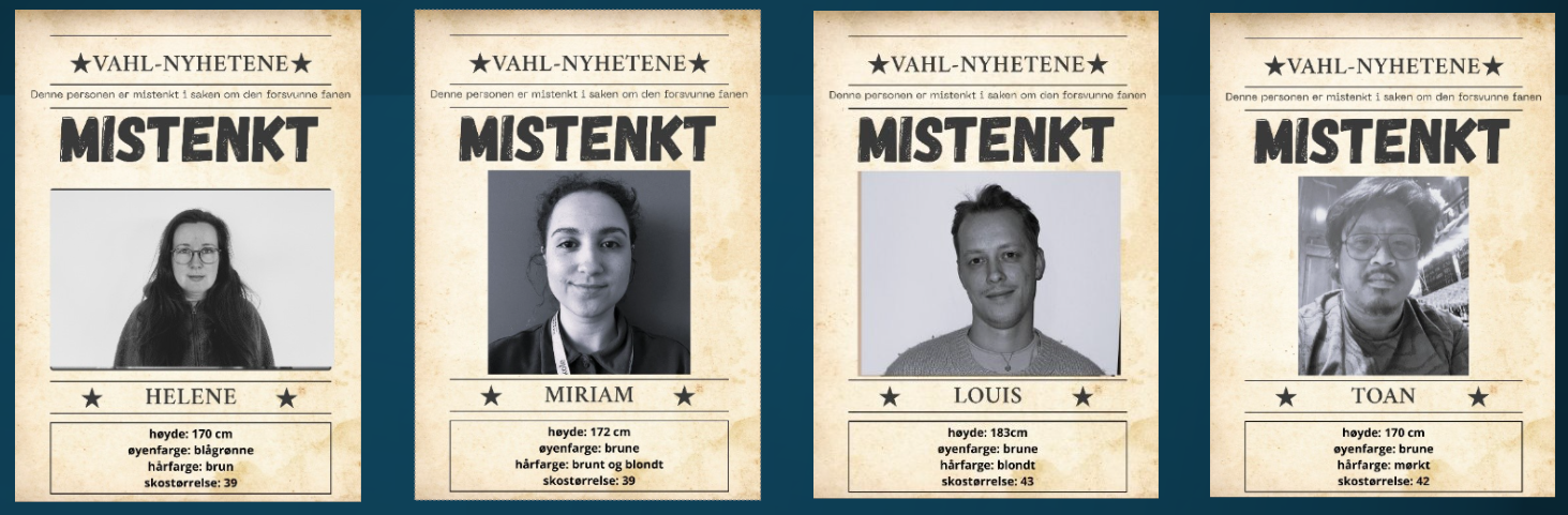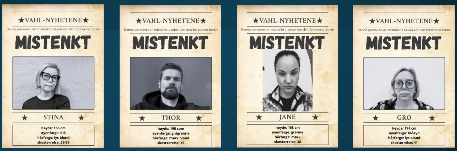 8 mistenkte er identifisert og avhørt. Elevene jobber med å avsløre hvem som har tatt fanen. De mistenkte: